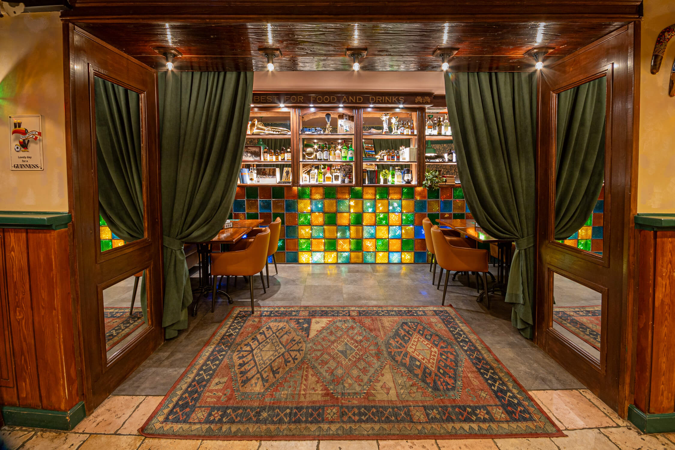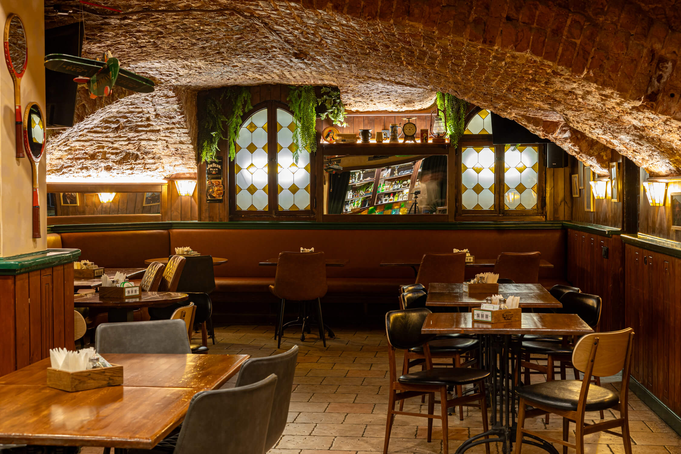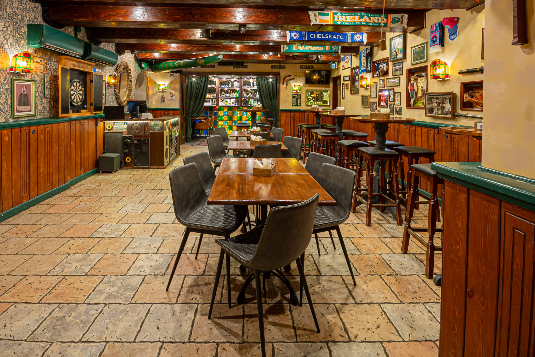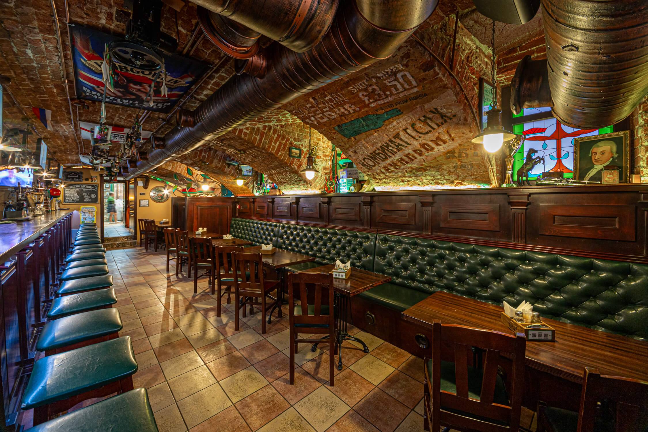 В пабе 2 зала, в одном из которых 15-метровая барная стойка. Есть и отдельный VIP-зал на 20 персон. С мая по октябрь работает чудесное летнее кафе во внутреннем дворике-колодце паба!